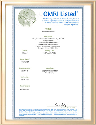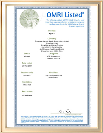Approved by OMRI organic certificate