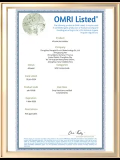 Khumic humic acid organic fertilizer products Approved by OMRI organic certificate